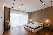 Второй этаж: мастер-спальня с выходом на балкон, три спальни с индивидуальным санузлом и гардеробной.