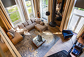 Первый этаж: гараж на 2 м/м, котельная, прихожая, холл, основная кухня, рабочая кухня, спальня с санузлом и сауной, постирочная, санузел;