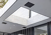 Второй этаж: спальня с гардеробной, ванная комната, терраса, кабинет, кинотеатр/семейная гостиная с выходом на террасу, детская библиотека, три детские с собственными санузлами и общим балконом, бельепровод (сброс в постирочную на первом этаже), блок персонала: две спальни, кухня и санузел;