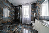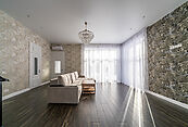 В доме просторная светлая гостиная - столовая с камином и выходом из столовой на террасу. Панорамное остекление создает ощущение дополнительного пространства и света. В доме установлены система кондиционирования и система теплого пола на всех этажах. СПА-зона с сауной и комнатой отдыха расположена на цокольном этаже.