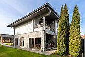 Первый этаж: холл, гардеробная, гостевой санузел, кухня-столовая с выходом на террасу с зоной BBQ, кладовая при кухне, гостиная с выходом на участок, спальня с санузлом, гостевая спальня, гардеробная, санузел, постирочная, спортзал, гараж на 2 м/м;