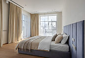 Второй этаж: гостиная с выходом на террасу, мастер-спальня с гардеробной, ванной и выходом на балкон, мастер-спальня с ванной и гардеробной, две спальни с выходами на террасу, игровая/комната няни с выходом на террасу, санузел.