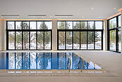 Первый этаж: каминный зал, кухня, бассейн, хаммам, санузел, душевая, раздевалка.