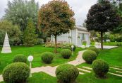Участок зеленый, благоустроенный, с высокорослыми хвойными и лиственными деревьями, декоративными кустарниками и цветниками. Организованы прогулочные дорожки, освещение, автополив и дренажная система.