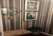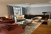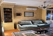На первом этаже — просторная кухня-гостиная с выходом на участок, где утренний кофе приобретает особый вкус. Кухня: немецкая фирма ligron, раковина Blanco, подогрев посуды asko, плита Siemens, СВЧ asko, духовка asko, винный шкаф liebherr, холодильники Siemens. Зона кухни: витрина из шпона по индивидуальному заказу, стол BoConcept, стулья Calligaris. Кабинет спроектирован по индивидуальному проекту, отделка шпон, библиотека изготовлена на заказ, стол 19 век и стул 18 век антиквариат, телевизор, обои Wallquest Document США, люстры из бронзы ручной работы.