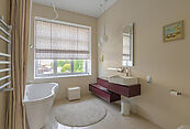 Второй этаж: мастер-спальня с ванной и гардеробной, две детские комнаты с общей ванной, гардеробная, постирочная.
