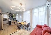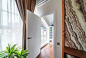 Этот дом отличается продуманной планировкой, современными удобствами и стильной дизайнерской отделкой. Вас порадуют просторное помещение гостиной совмещенной с кухней-столовой с островом и всем необходимым оборудованием: варочной панелью, мощной вытяжкой, духовым шкафом, микроволновой печью, большим холодильником, фильтром для воды с технологией обратного осмоса. Из кухни есть выход на веранду, где приятно проводить время в теплую погоду. Немаловажно, что на первом этаже есть гостевая спальня и полноценный санузел с душевой, а котельная оснащена современным оборудованием. Все инженерное оборудование выполнено на высоком уровне, по все дому разведен теплый водяной пол, в жилых комнатах установлены инверторные кондиционеры. В санузлах дорогая итальянская сантехника.