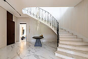 Величие и благородство: Вас встретит монументальная парадная лестница из натурального мрамора, подчеркивающая респектабельность резиденции. На втором этаже вас ждет тепло и естественная красота массивного дуба под ногами.