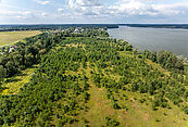 Участок площадью 41 сотка прямоугольной формы (примерно 26 м х 150 м) хорошо освещен и подготовлен к проведению ландшафтных работ. С юго-восточной стороны часть участка занимает смешанный лес: реликтовые сосны, ели и березы. С противоположной стороны открывается прекрасный вид на воду. Можно поставить свой причал.