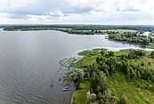Участок площадью 41 сотка прямоугольной формы (примерно 26 м х 150 м) хорошо освещен и подготовлен к проведению ландшафтных работ. С юго-восточной стороны часть участка занимает смешанный лес: реликтовые сосны, ели и березы. С противоположной стороны открывается прекрасный вид на воду. Можно поставить свой причал.
