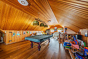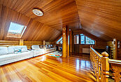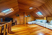 Мансардный этаж — это идеальное место для отдыха: здесь разместились комфортные большие диваны для размеренных бесед, а также стол для бильярда. Также на мансарде имеются три кладовых для хранения сезонных вещей.