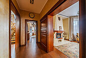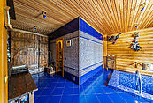 Основной дом встретит вас просторным холлом со встроенными шкафами, пригласит в просторную гостиную с камином, где можно проводить вечера в кругу семьи, в уютной кухне-столовой, оснащенной современной итальянской техникой Nardi (варочная поверхность, духовой шкаф и вытяжка, холодильник, посудомоечная машина) за большим столом можно собраться даже большой компанией.