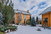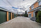 На просторном участке площадью 15 соток размещено несколько строений: основной дом из кирпича 280 кв.м, гостевой дом-баня из бревна 170 кв.м, дом для персонала и хозблок, навес на два автомобиля.