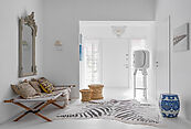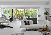 Первый этаж: прихожая с гардеробной, кабинет со своим душем, кухня - столовая, просторная гостиная с каминной зонной и выходом на патио с уличной кухней, гостевой санузел;