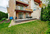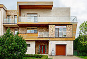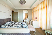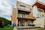 Современная архитектурная концепция. Фасад облицова натуральным камнем и деревом. Большие панорамные окна ориентированы на три стороны. Во внутренней отделке - исключительно премиальные материалы, дорогая мебель, встроенная бытовая техника, сантехника.