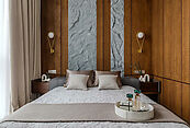 Третий этаж: спальня с гардеробной и санузлом, спальня с санузлом, кабинет.