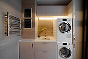 Первый этаж - прихожая, гостевой с/у, спальня, кухня-гостиная-столовая, котельная, терраса.