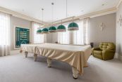 Первый этаж: кухня, столовая-гостиная, кабинет, гостевой санузел, спортзал, бильярдная, СПА-зона (бассейн 8х5 метров с противотоком, солевая комната, сауна);