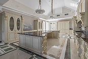Первый этаж: холл, гардеробная, спальня с санузлом с ванной, гостиная с камином, кабинет, кухня-столовая с выходом на террасу, гостиная с балконом, вторая кухня-мангальная с выходом на веранду, санузел с душевой, лифт