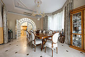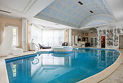 Первый этаж: холл, гостиная с камином, кабинет, столовая, кухня, гостевой санузел, бассейн, сауна, джакузи;