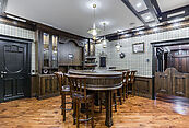 Цокольный этаж: кинотеатр, бильярдная со столом для русского бильярда, винный погреб, сезонная гардеробная, санузел, хозяйственные помещения, просторная постирочная;
