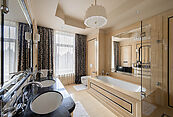 Цокольный этаж: домашний кинотеатр, огромная гардеробная, постирочная, ванная комната, комнаты для бытовых нужд, бойлерная, оружейная, тех.помещения вентиляции и бассейна, проход к СПА-комплексу;