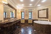 Цоколь: бойлерная, электрощитовая, кладовая, постирочная, тренажерный зал, бильярдная, бар, винный погреб, кинотеатр, помещение для обслуживания бассейна
