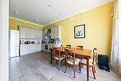 Первый этаж: кухня-столовая, гостевой санузел, построчная, гостиная, выход на террасу;