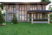Двухэтажный дом без внутренней отделки строится в классическом стиле. До окончания строительства есть возможность заказать у застройщика уже разработанную под этот проект дизайнерскую отделку интерьера.