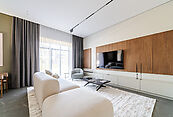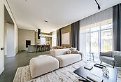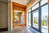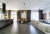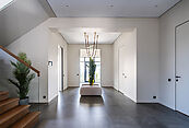 В доме выполнен дизайнерский ремонт. Панорамное остекление наполняет внутреннее пространство естественным светом и ощущением единства с природой. Интерьер выполнен в современном стиле, в светлых, мягких пастельных тонах.