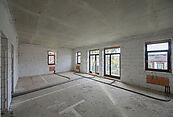 Второй этаж: кухня-гостиная с выходом на балкон, холл, мастер-спальня с ванной и гардеробной, две комнаты с ванными и выходами на общий балкон;