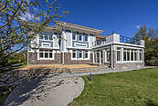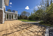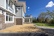 Современный стильный особняк отличается техническим оснащением высокого уровня и качественной отделкой с применением дорогостоящих материалов. Все люстры и светильники, а также сантехника - Англия. Пол – комбинация инженерной доски и сланца. Дом украшают мраморные подоконники, гранитные террасы и двери, которые были изготовлены под заказ. В отделке использованы деревянные окна, гранитная терраса и 3 маркизы (Германия). Кондиционирование: канальное Daikin. Приточно-вытяжная Установка Systemair. Водоподготовка Honeywell, два котла De Dietrich. В доме установлен бесшовный интернет wi-fi. Видеонаблюдение - Трасир. Охрана и пожарная сигнализация Siemens.