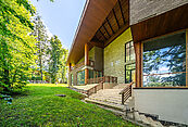 Территория укрыта тенью высоких пушистых сосен. Несколько домов расположены на «Мысе любви», омываемом Малой Истрой, откуда открываются панорамные виды на окрестности.