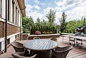 Дом с гаражом и бассейном. Архитектура дома содержит в себе элементы классики и популярного стиля Райта, что обеспечивается ее актуальность на долгие годы вперед. Дом построен в 2015 году. Фундамент - свайный, материл строительства - австрийский керамический поризованный кирпич, кровля покрыта мягкой итальянской черепицей.