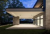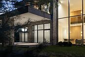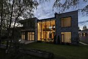 Дом 586 кв метров с панорамным остеклением и вторым светом располагается на участке 21 сотка, который примыкает к лесу.