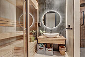 В отделке использованы элитные, натуральные материалы. Всё укомплектовано современным оборудованием и мебелью по авторским эскизам.