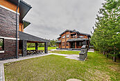 Участок правильной и ровной формы расположен на тупиковой улице в поселке, в пешей доступности от выхода в лес. На территории участка выполнен ландшафтный дизайн: сделаны дорожки из брусчатки, выстлан газон, растут многолетние деревья и декоративные кустарники, вокруг дома сделан дренаж. Перед домом сделана большая площадка для парковки автомобилей и теплый гараж на 2 автомобиля. На придомовой территории сделана веранда и отдельно мангальная зона.