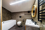 На территории участка расположен гостевой дом с банным комлексом площадью 190 кв.м., полностью готовый к проживанию. Баня 12кв.м. выполена из канадского кедра с оборудованием Gefest. Планировка гостевого дома включает в себя просторный зал с кухней со вторым светом, две спальни и спа-зону с бассейном.