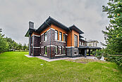 Дом 520 кв.м. выполнен в современном стиле Райт, построен в 2023 году из кирпича на монолитном фундаменте и с монолитными перекрытиями, фасад здания облицован каменным клинкером и деревянной доской, сделана входная группа с широкой лестницей и навесом под автомобиль, крыша - композитная черепица. В данный момент идут чистовые отделочные работы внутри дома.