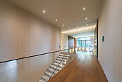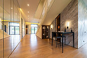 Входная группа: холл 15 кв. м, оборудованные гардеробная верхней одежды 14 кв. м и гостевая гардеробная, гостевой блок (или блок персонала) – 2 спальни, гостевой санузел с душевой и кабинет 20 кв. м.