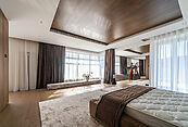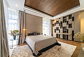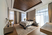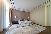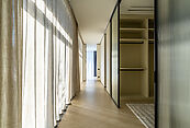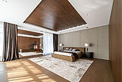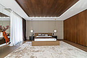 Второй этаж: мастер-спальня со своей гардеробной и ванной комнатами, две спальни, каждая со своим санузлом, гардеробная, спальня с гардеробной и ванной комнатами, терраса, блок для персонала.