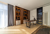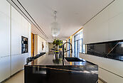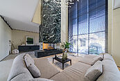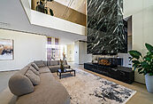 В доме выполнена отделка по индивидуальному проекту, в современном стиле с использованием дорогих, качественных материалов. Благодаря высоким потолкам и большим окнам в пол пространство наполнено воздухом и светом. Эксклюзивные дизайнерские решения придают уникальность внутреннему пространству дома. Функциональная планировка позволяет максимально удобно использовать внутреннее пространство. Все коммуникации - центральные: газоснабжение, электроснабжение, холодное водоснабжение, канализация.