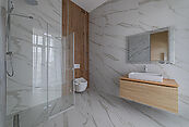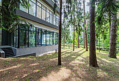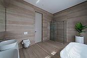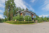 Новый дом расположен в тихой части поселка. Своим стилем он идеально вписывается в лесное окружение. Этот особняк подойдет тем, кто любит природу, но при этом хочет, чтобы рядом была вся инфраструктура. В доме есть вся необходимая мебель и техника для постоянного проживания. Двухэтажный дом с 4 спальнями и 3 ванными комнатами. Большие панорамные окна в пол в каждой комнате и в ваннах комнатах. Здесь открывается потрясающий вид на лес, в котором много еловых — вечнозеленые деревья даже в самую долгую зиму будут радовать вас и создавать особое настроение.