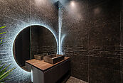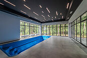 Первый этаж: прихожая, гардеробная, санузел, гостиная, кухня, столовая, кабинет, бассейн, сауна, комната отдыха, котельная, постирочная, гараж