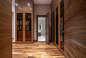 Второй этаж: 2 мастер-спальни, каждая со своей гардеробной и ванной комнатами, 2 спальни, каждая со своим санузлом, кабинет, тренажерный зал.