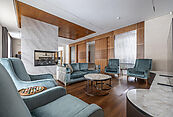 Первый этаж: холл, коридор, гостиная, кухня-столовая, вторая гостиная, 2 санузла, SPA-зона с хаммамом, техническое помещение, кладовая, постирочная, гараж на 2 автомобиля.