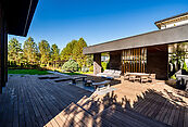 гидромассажа дарит ощущение полного расслабления. Панорамное остекление наполняет пространство светом, позволяя наслаждаться видом на участок и природой за окном. Хаммам и зона отдыха создают пространство для восстановления сил и уединения.