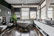 Гостевой дом оборудован всем необходимым для полноценного отдыха. В нем есть спальня, санузел, зона отдыха, сауна и хаммам. На втором этаже предусмотрены две квартиры для персонала. Дополнительно организована летняя зона BBQ.