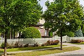 На участке сделан дренаж, вымощены дорожки, установлено освещение. Высажены многочисленные деревья и кустарники. Дом расположен в тупиковой зоне, что гарантирует спокойствие и минимальное количество соседей.