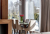 Внутренняя отделка выполнена в 2024г. Планировка позволяет полностью скрыть частную жизнь от соседей: все жилые зоны и терраса ориентированы на лес. Высокие потолки создают объем, интерьер укомплектован мебелью и техникой ведущих мировых брендов.